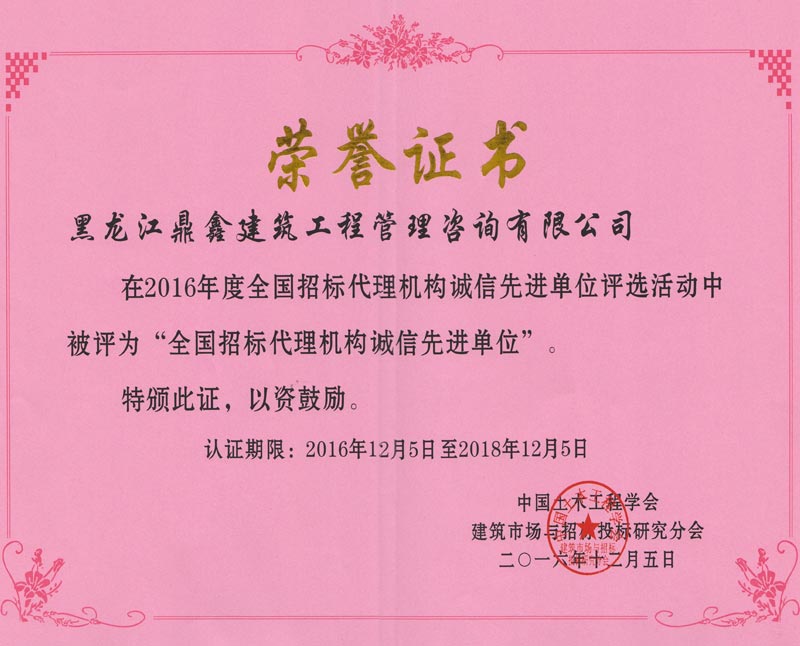 黑龍江鼎鑫建筑工程管理咨詢有限公司成立于2005年,注冊(cè)資金400萬(wàn)元。具備中華人民共和國(guó)住房和城鄉(xiāng)建設(shè)部批準(zhǔn)的工程招標(biāo)代理機(jī)構(gòu)資格、中華人民共和國(guó)財(cái)政部批準(zhǔn)的政府采購(gòu)招標(biāo)代理機(jī)構(gòu)資格、黑龍江省商務(wù)廳批準(zhǔn)的機(jī)電產(chǎn)品國(guó)際招標(biāo)代理機(jī)構(gòu)資格、中華人民共和國(guó)住房和城鄉(xiāng)建設(shè)部批準(zhǔn)的工程造價(jià)咨詢甲級(jí)資質(zhì)、黑龍江省住房和城鄉(xiāng)建設(shè)廳批準(zhǔn)的房屋建筑工程監(jiān)理乙級(jí)(市政公用工程監(jiān)理乙級(jí)資質(zhì))。主要從事建設(shè)工程及政府采購(gòu)招標(biāo)、造價(jià)咨詢、工程監(jiān)理、項(xiàng)目管理等業(yè)務(wù)。