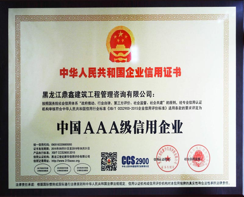 • 中國(guó)AAA級(jí)信用企業(yè)證書